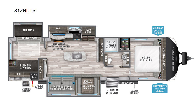 Back to Inventory Details. 2021 Grand Design Reflection 312BHTS. Grand Design Reflection 312BHTS travel trailer highlights.